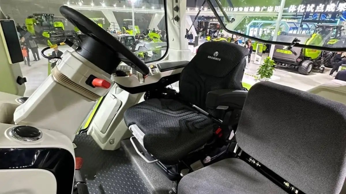 Пневматическое сиденье с регулировкой по весу оператора гасит вибрации от неровностей поля. Система кондиционирования поддерживает комфортную температуру в любую погоду — от +18 до +22 градусов. Холодильная камера позволяет сохранить прохладными напитки и продукты в жаркий день.