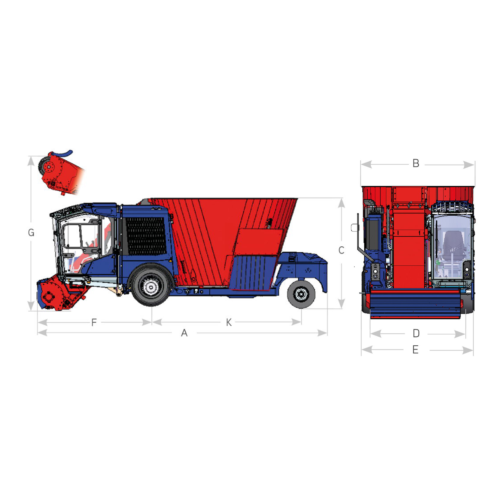 Компактная, узкая конструкция с маневренным 3-точечным шасси позволяет производить выгрузку с обеих сторон, не переезжая через кормовую массу, особенно в стесненных условиях коровника.