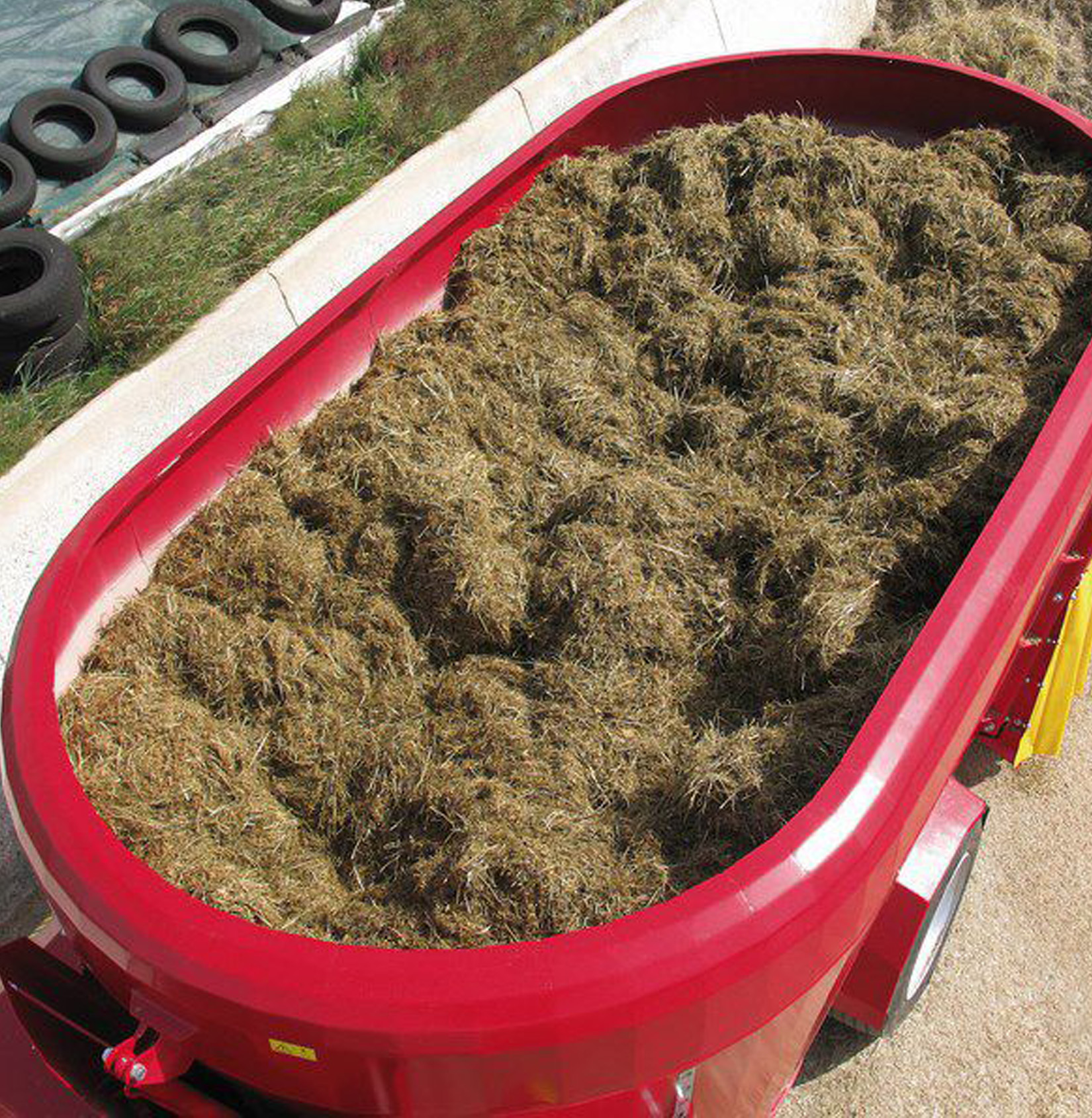 поперечный ленточный транспортер обеспечивает равномерную раздачу корма в широкий валок, благодаря чему корм остается свежим