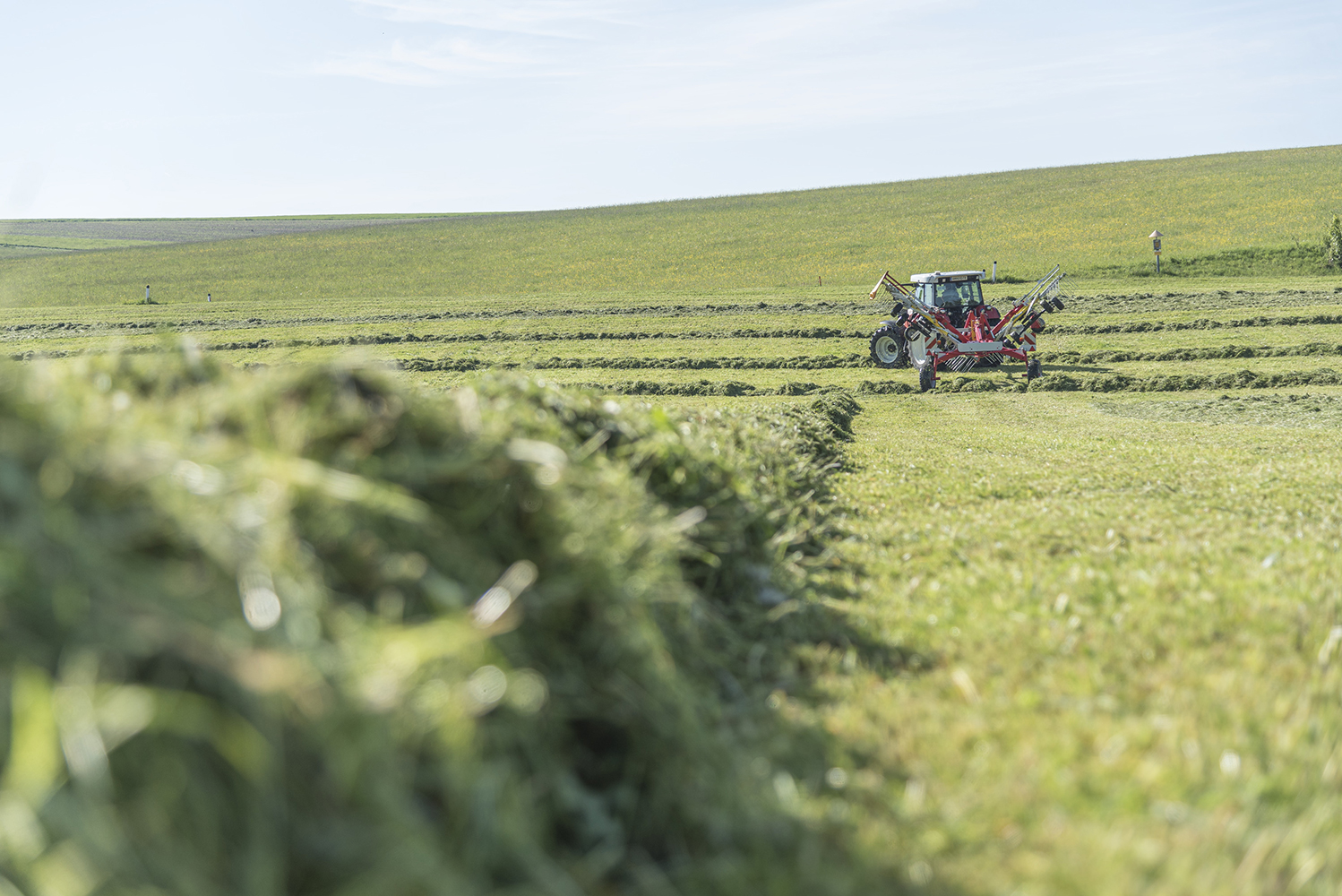 Благодаря своей длине и большим направляющим дорожкам граблины аккуратно извлекаются из валка. Это приводит к формированию равномерного и воздушного валка, что является преимуществом для работы последующей кормозаготовительной техники. Одновременно минимизируются потери листовой массы.