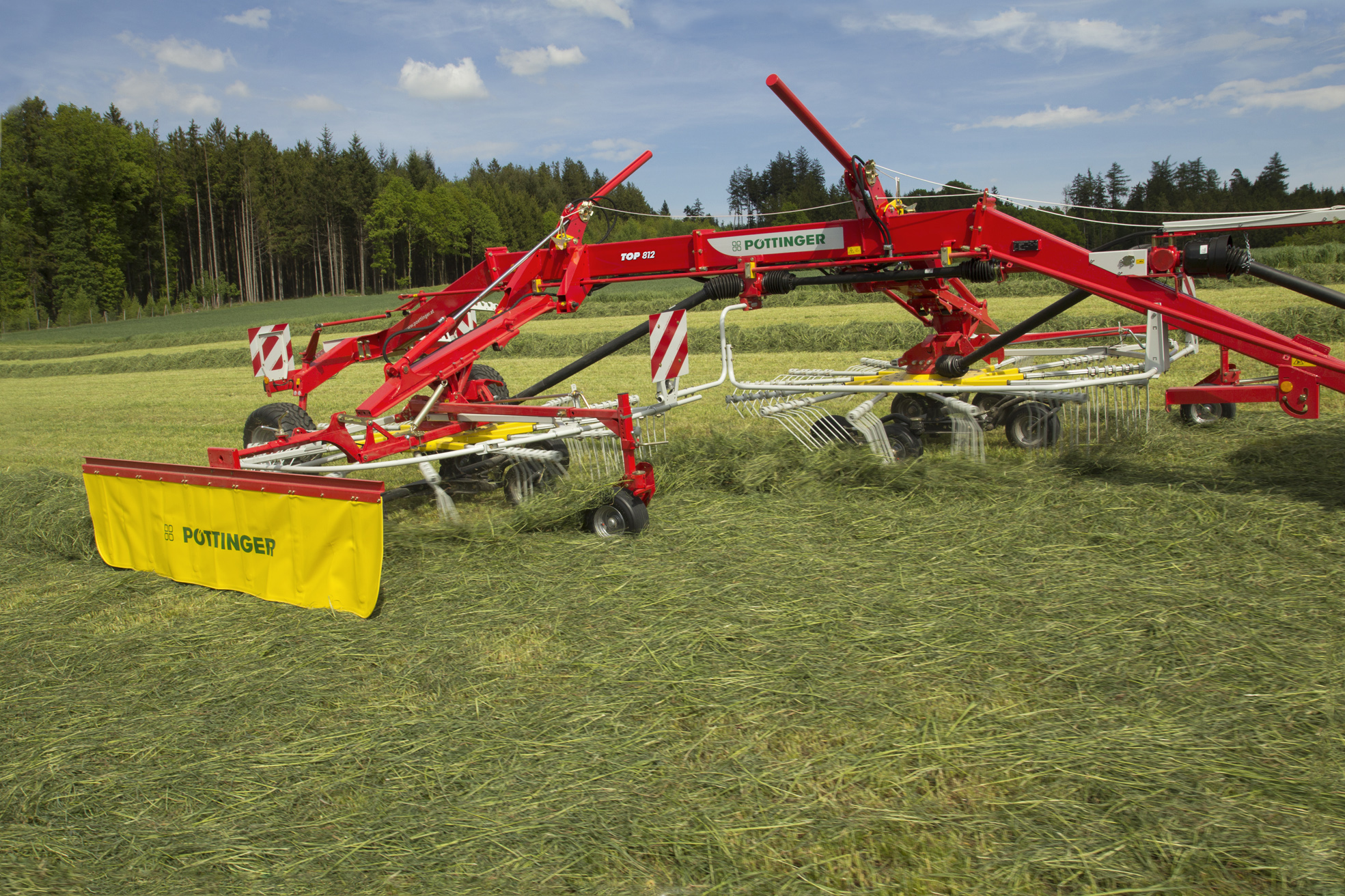 Оба валкообразователя с боковой укладкой валка TOP 722 и TOP 812 отличаются не только чистым забором, но и бережным обращением с кормом. Обеими моделями вы можете переезжать через уже уложенные валки, не повреждая их.